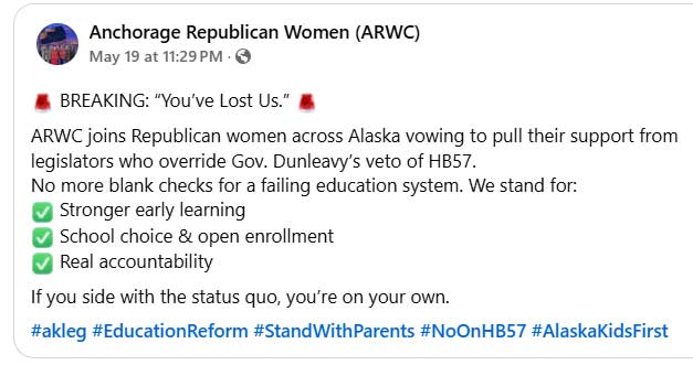 The next election is a year and a half off, which might seem like a long time to them, but it will be here in the blink of an eye. It is time for the RINO Republican members of the legislature to face the music. They overturned the governor’s veto and will now have to face the wrath of the voters. Given the statement from the Republican Women’s organizations, I would not be surprised if all the RINOs, including the two Representatives from the Kenai; Mr. Ruffridge and Mr. Elam, face a MAGA conservative challenger in the 2026 primary.