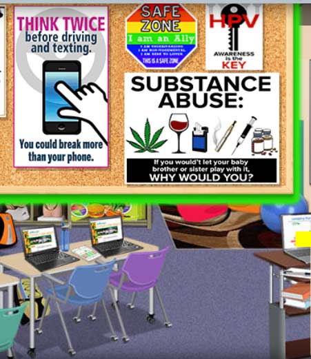 Another link on the website depicts an ideal 9-12th grade class, which includes a prominent LGBTQ rainbow poster that states “I am an ally.” The website notes that the exemplary classroom teacher promotes “a wide range of clubs and activities so that all of her students can find a place to belong and contribute,” while making it known “that her classroom is a safe space, meaning students can privately talk with her about concerns or issues they may have in a supportive and non-judgmental environment.”