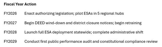— System of Public Education: This proposal does not abolish public education. It redefines it by establishing a system of universal access to publicly funded education through ESAs. Every child remains eligible, regardless of geography or income.