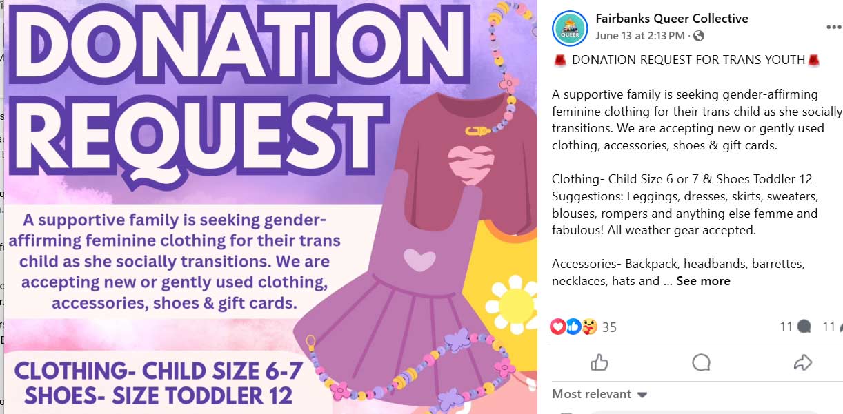 Last month, the Fairbanks Queer Collective sent out a donation request for a “trans youth.”