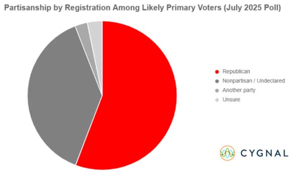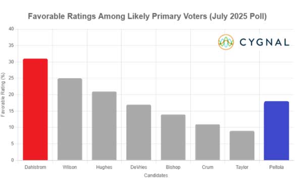 The survey took place July 24-27 and included 500 likely GOP primary voters. Results show that most candidates are largely unknown to voters. Adam Crum, who resigned as Revenue Commissioner on August 8 and entered the race on August 11, is unfamiliar to 52% of respondents, with 11% viewing him favorably. Attorney General Treg Taylor, expected to announce his candidacy, is unknown to 57% of likely GOP voters and has a 9% favorability rating.