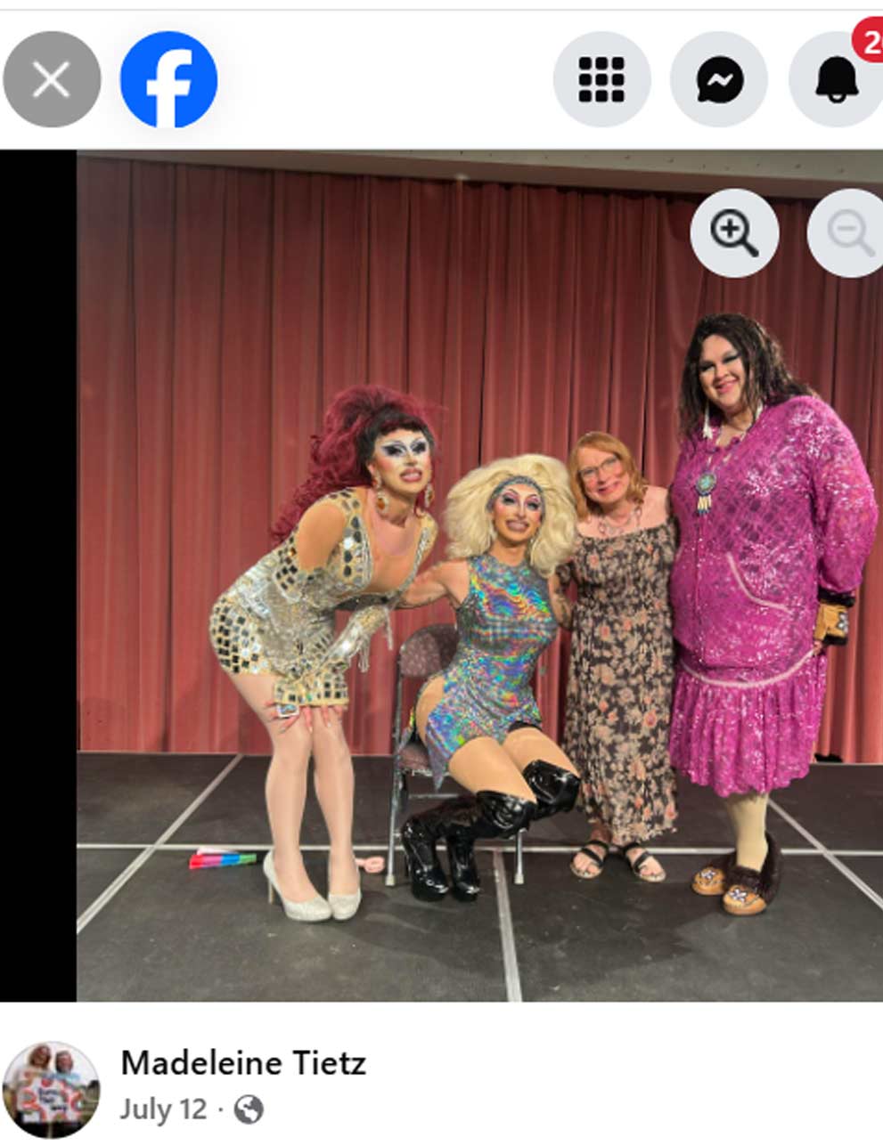 Tietz is an LGBTQ activist whose Facebook page included an image posted on July 12 of him in a women’s dress, posing next to scantily clad drag queen dancers. His Facebook account, also includes messages stating, “transgender pride” and “born this way.” One photo, which looks to have been taken in a school faculty area, shows Tietz standing awkwardly in a blue dress..