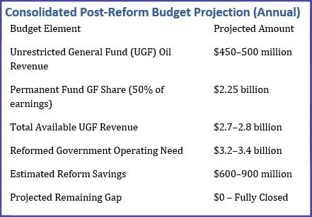Under this framework, Alaska achieves long-term budget balance through aggressive modernization, reduced dependency on federal programs, and optimized use of its own natural resource wealth. With $40 oil as the baseline, Alaska proves it can fund its obligations, honor the PFD, and build a sustainable economic future without growing government or surrendering its sovereign potential.