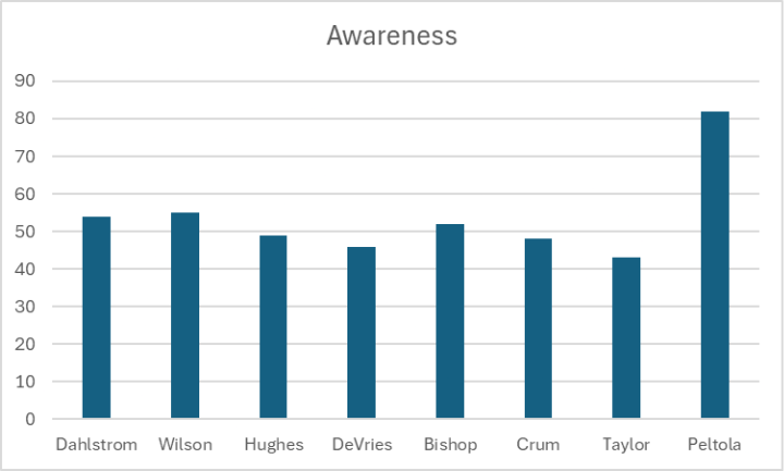 I think that both favorability and awareness are hard to overcome, with favorability the easier of the two, as most people don’t really know what conservative politicians or candidates have said or done.