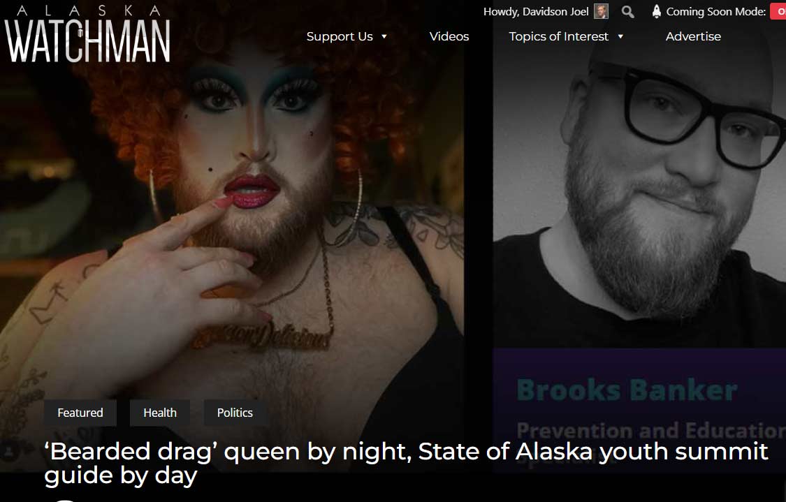 As reported earlier by the Watchman, Banker’s current day job is working as a violence prevention educator with STAR (Standing Together Against Rape). Before that, he was a youth outreach programmer for the LGBTQ activist group, Identity, Inc. During that time, Banker organized, promoted and participated in drag queen story hours for toddlers and teens at Anchorage’s Loussac Library.