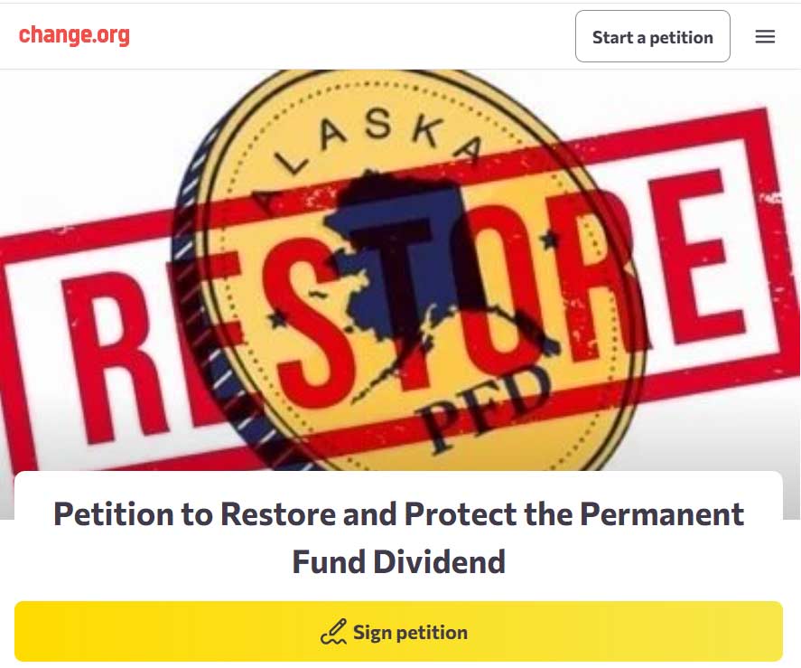Posted to change.org on Sept. 21, the petition surfaced just weeks before Alaskans begin receiving their PFD checks of about $1,000 each. When factoring for inflation, this amounts to the smallest PFD since the program began in 1982.