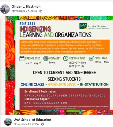 She also directs UAA’s master’s degree program in educational leadership, which includes teaching prospective school leaders how to advance “social justice issues,” promote “otherized populations” and foster “resistance” and strategies to replace Western perspectives with Indigenous ones.