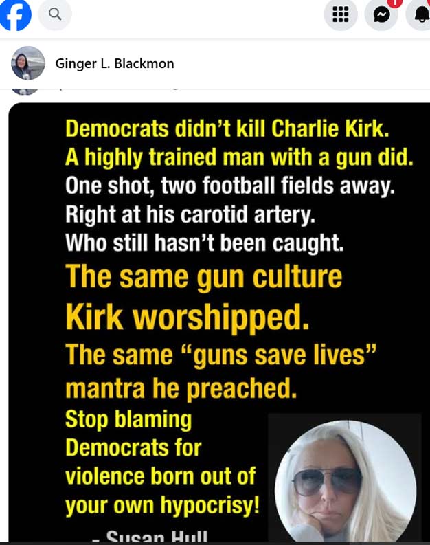The day after conservative influencer Charlie Kirk was assassinated during a college speaking event in Utah, Blackmon reposted a meme that blamed Kirk’s murder on his “worship” of gun culture, while another entry called him a “white supremacist” who encouraged violence.