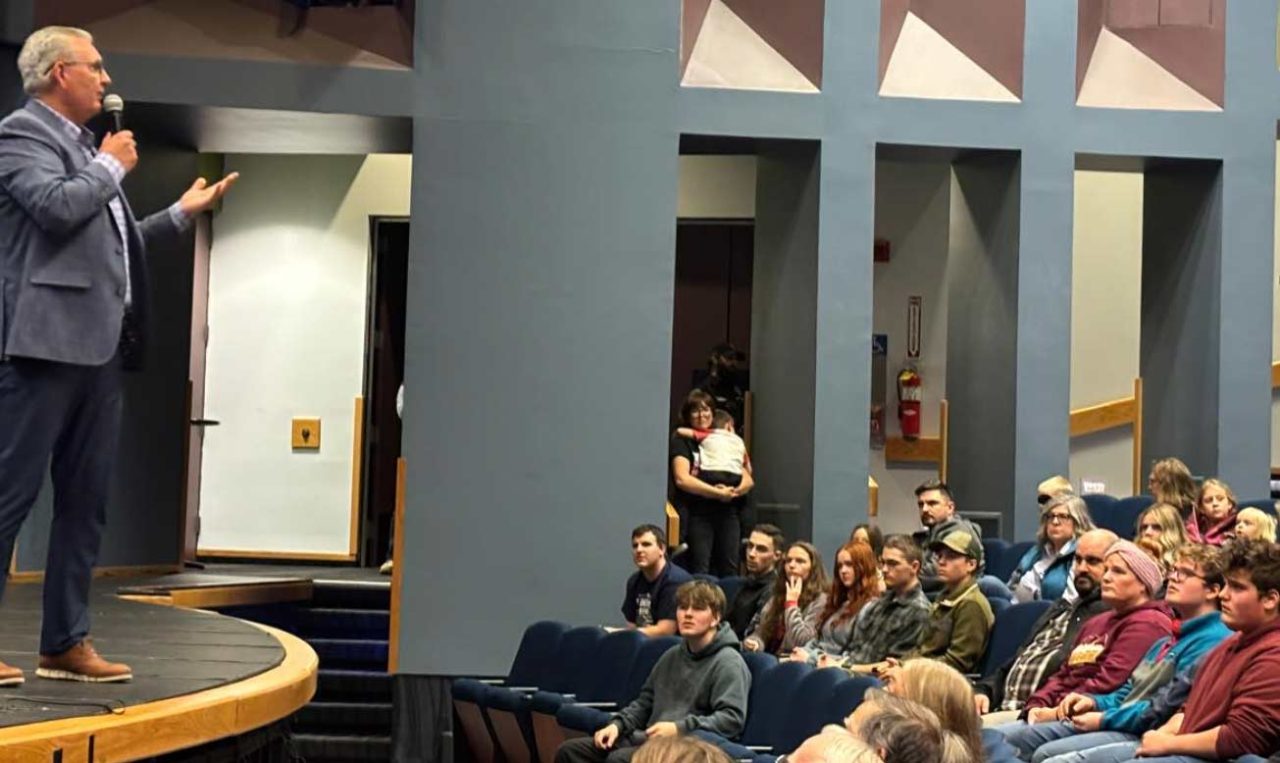After a video message was played by U.S. Sen. Dan Sullivan, Alaska Family Council President Jim Minnery led the assembly in an opening prayer, confessing that everyone needs God’s forgiveness and grace. He thanked God for Kirk’s defense of virtue and morality – asking for God to revive the hearts and minds of both Christians and unbelievers alike, so they might forgive others, grow in wisdom and become vehicles of Christ’s love in the world.