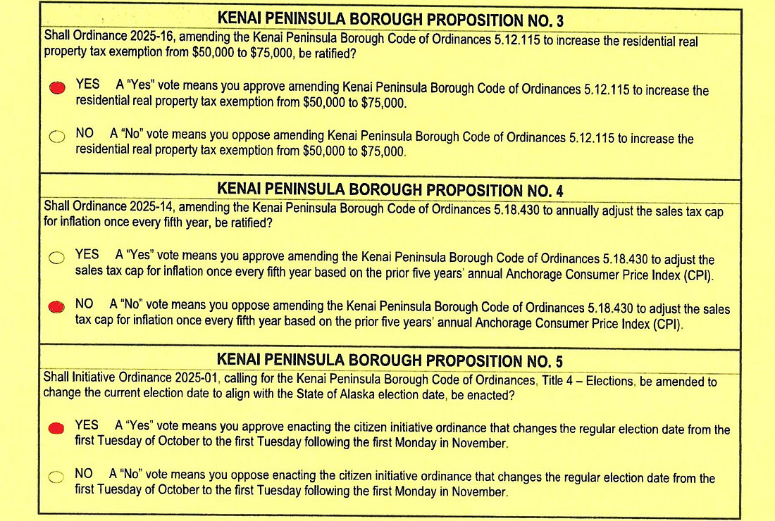 In a recent article, I encouraged Homer residents to support the three conservative candidates running for the city council. I hope this alone motivates people to get out and vote on Oct. 7. However, there are propositions on the borough ballot that are also important to conservatives. They relate to how we tax ourselves and the timing and method for conducting elections.