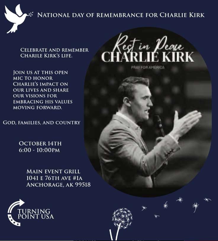 Later that night, the UAA Turning Point chapter is helping to put on a public event at Main Event Grill in Anchorage, where attendees will have an opportunity to take part in an open mic night to recount how Charlie Kirk impacted their lives, and what they plan to do to advance the conservative cause moving forward. That event will run 6-10 p.m.
