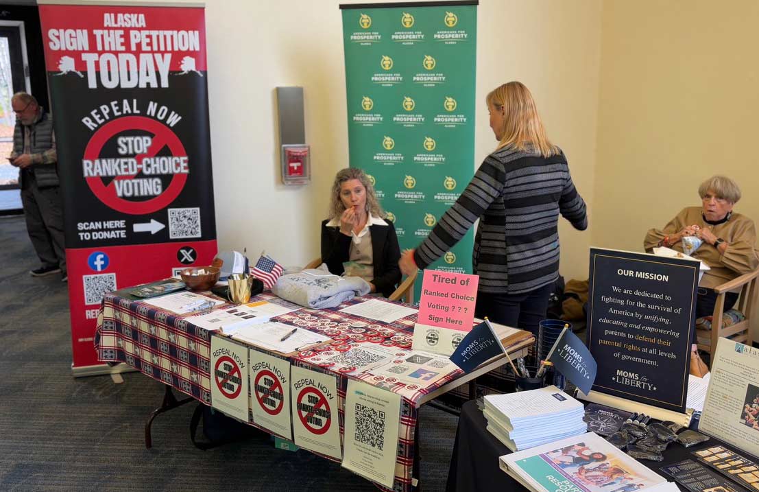 Representatives from Moms for Liberty, Americans for Prosperity-Alaska, and the rank-choice repeal effort were also on hand, as were school choice advocates.