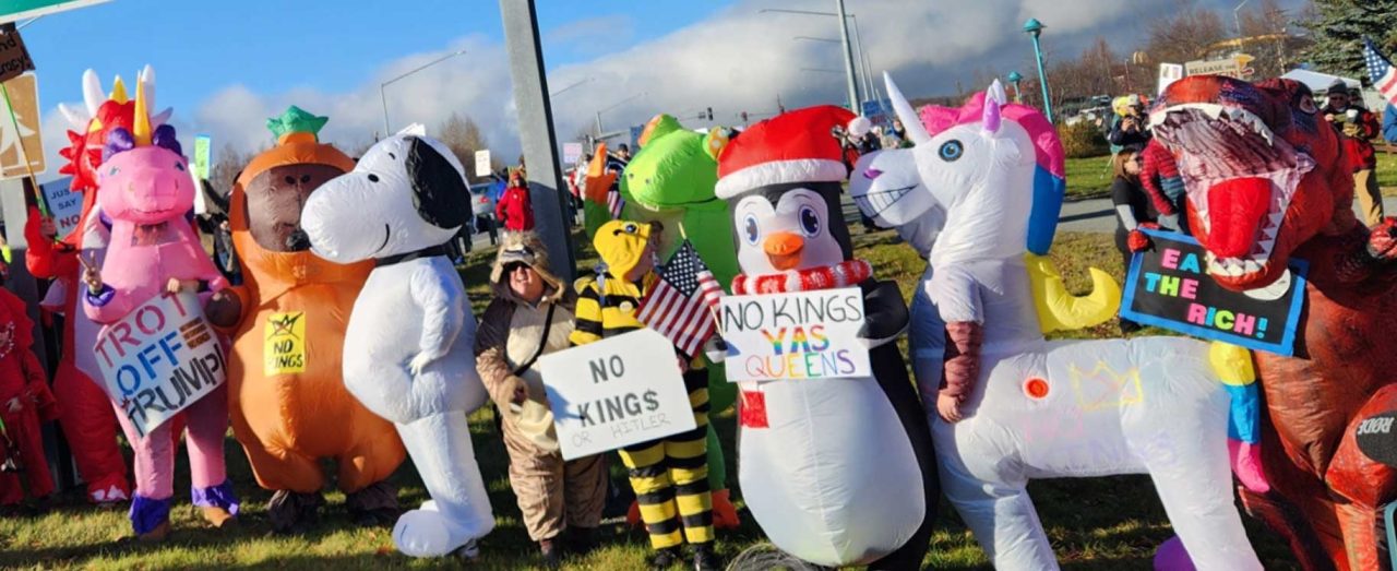 According to the No Kings website, demonstrations occurred in Ketchikan, Dillingham, Juneau, Gustavus, Petersburg, Fairbanks, North Pole, Kotzebue, Homer, Girdwood, Wasilla, Anchorage, Seward, Valdez, Sitka, Haines, and Kodiak.