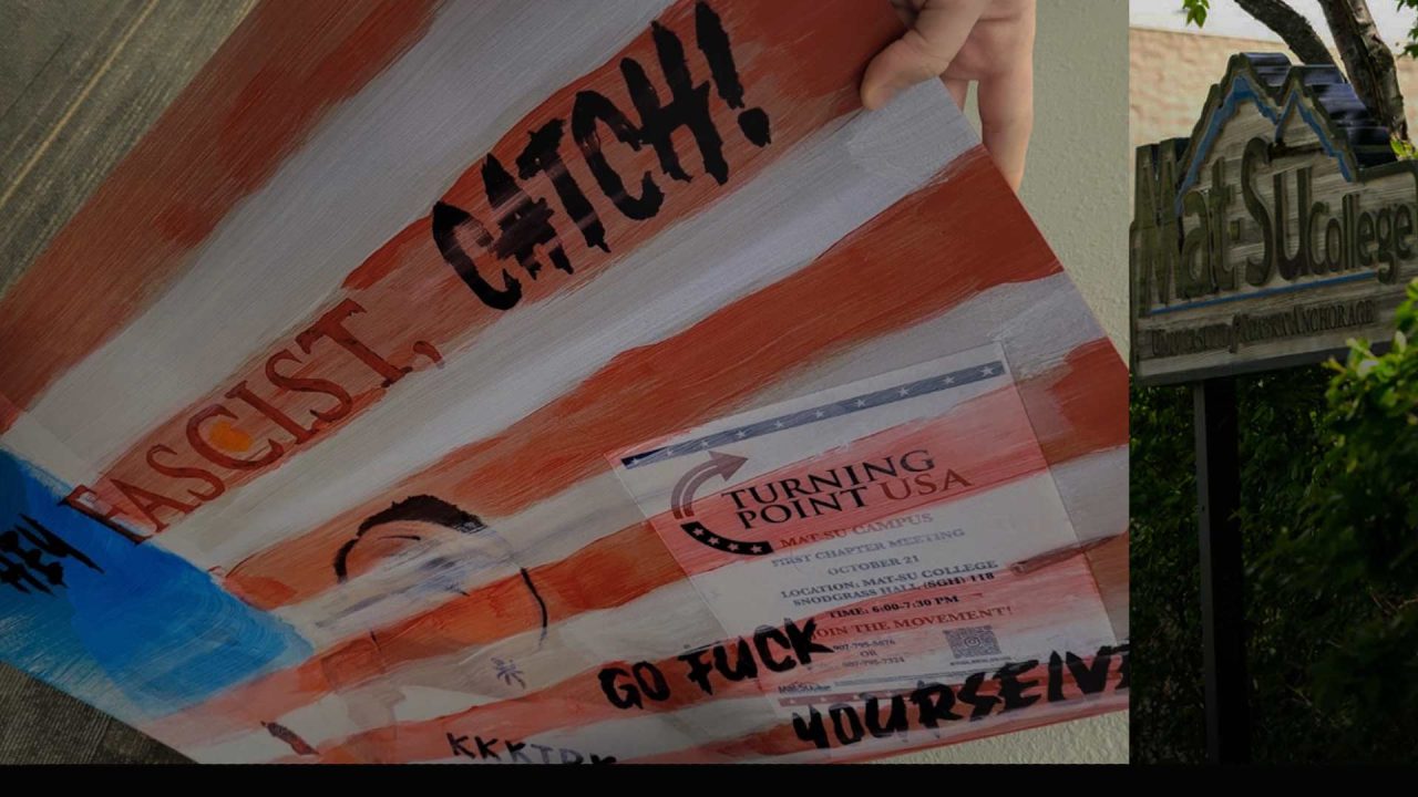 The newly launched Turning Point USA chapter at Mat-Su College was targeted this week by a masked man posting anti-Charlie Kirk posters that praised his death and included threats of violence against Turning Point.