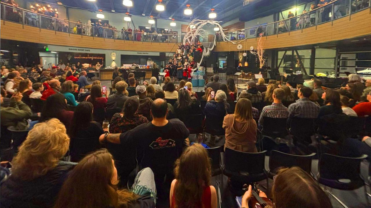 An estimated 300-plus people packed into the public correspondence school’s standing-room-only great room for the Dec. 4 concert, which included instrumental pieces, choral music and solo vocal performances.