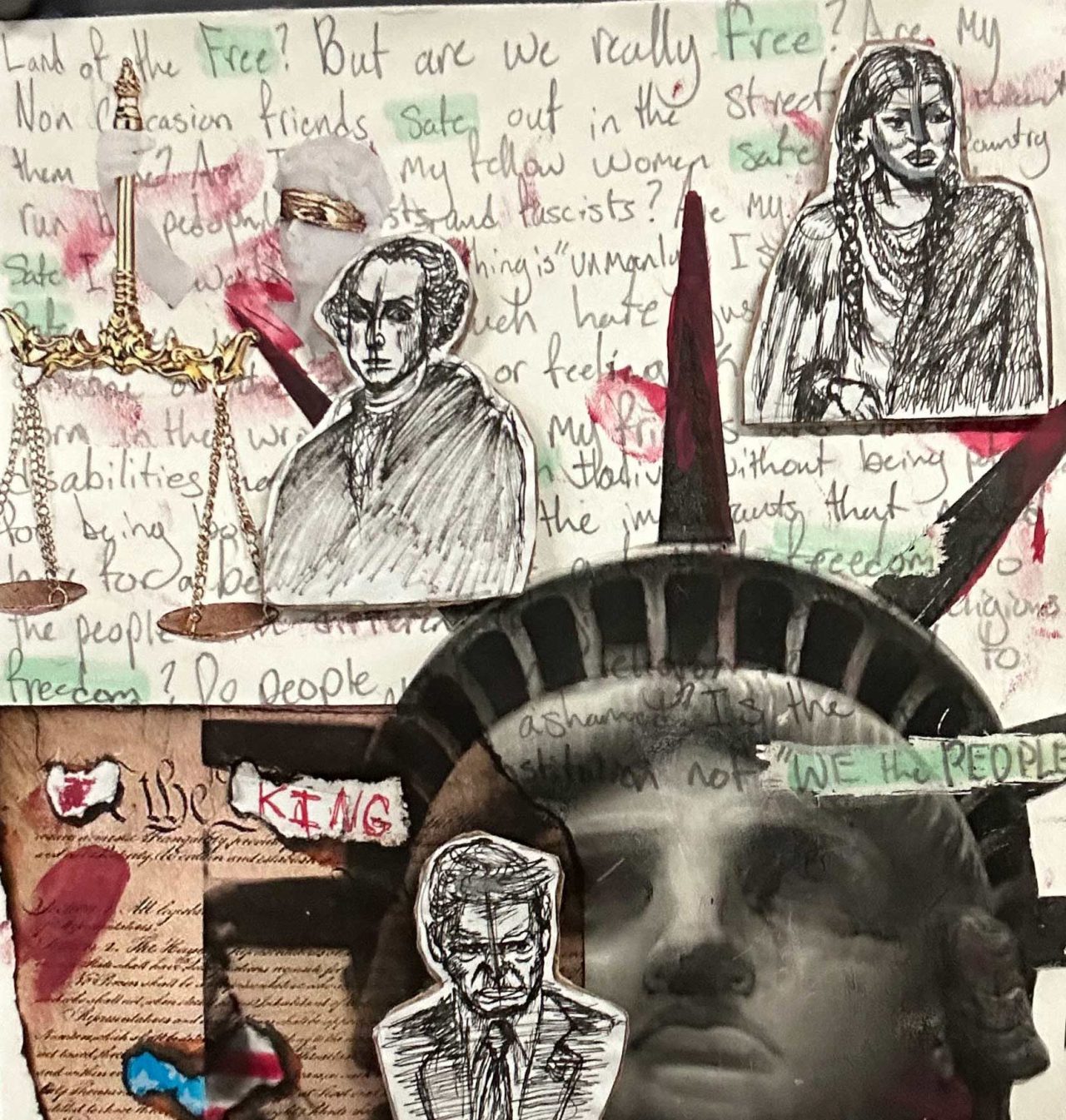 One piece portrayed the Statue of Liberty as an old white man and included a paragraph to explain the student’s intentions behind the art.