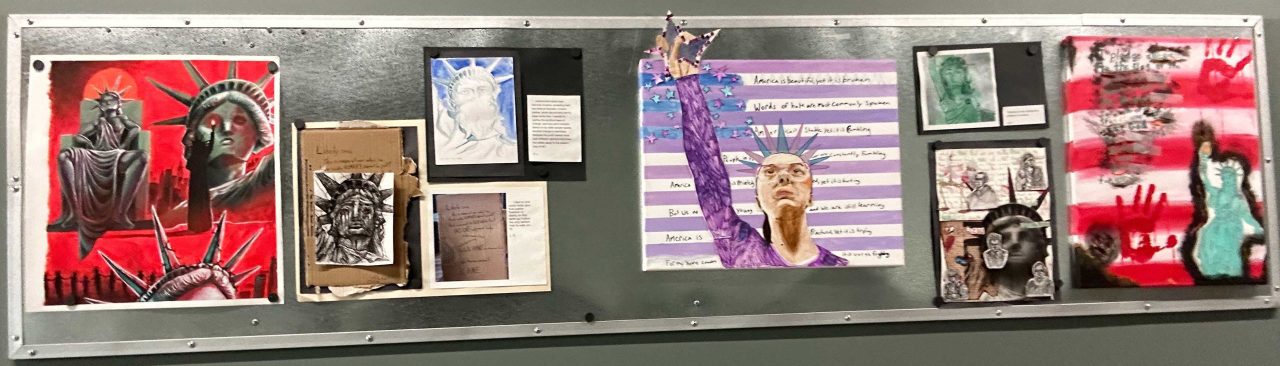 A controversial, school-authorized student art display at the Mat-Su Central was taken down last week, after concerns were raised that it explicitly blames “older white men” and traditional values for the spread of hate in America, while depicting the Statue of Liberty as a “fraud.”