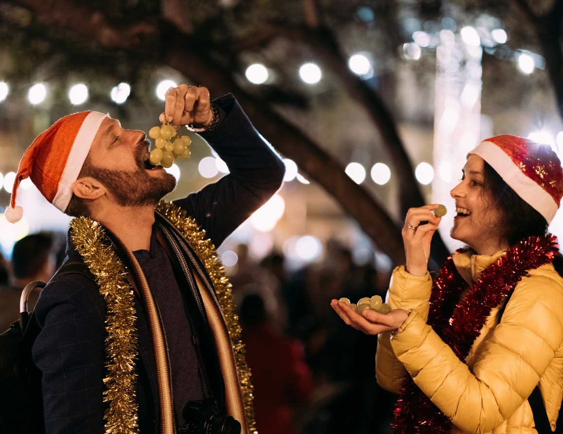 Worldwide, New Year’s Eve traditions often focus on luck, prosperity, fortune and new beginnings – featuring lucky foods like Spain’s Las Doce Uvas de la Suerte (The Twelve Grapes of Luck tradition consists of eating a grape with each of the 12 strikes of the clock bell at midnight on Dec. 31 to welcome the New Year. Each grape and clock strike represents each of the coming 12 months); the Southern U.S. tradition of eating black-eyed peas; noisemaking to scare spirits (Ireland’s pots, Ecuador’s effigies); symbolic actions like Scotland’s “first footing”; Brazil’s wave jumping, wearing specific colors (red underwear in Italy, white in Brazil); and cultural rituals like Japan’s 108 temple bells for purification. Indeed, these traditions are deeply rooted in bringing fortune and a fresh start in the coming year.