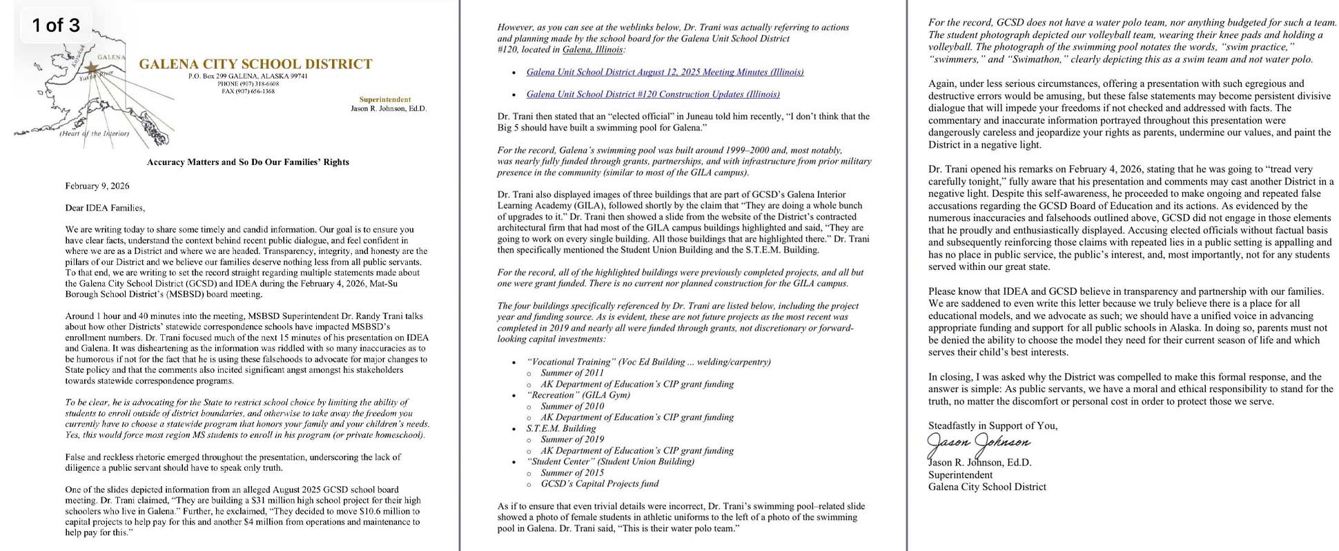 Trani’s misleading presentation drew a quick rebuke from Galena Superintendent Jason Johnson who sent a three-page rebuttal to IDEA families on Feb. 9.