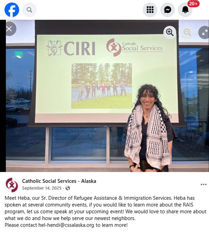 The Feb. 24 talk will be given by Heba El-Hendi, who works as the Catholic Social Services’ senior director of Refugee Assistance and Immigration Services in Alaska. Joining her will be Cindy Woods, senior staff attorney for immigrants’ rights at ACLU of Alaska.