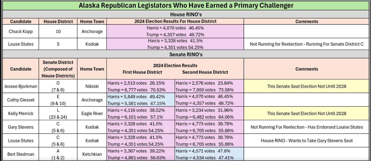 If we don’t get good candidates to run against the feckless seven, then we will end up with the same results in Juneau that we have now. The RINOs will be emboldened if they are not held accountable, and will take the lack of challengers as a validation of their treachery. Future legislatures with this mindset will find new ways to tax you, take even more of your PFD check, and advance their woke liberal agendas.