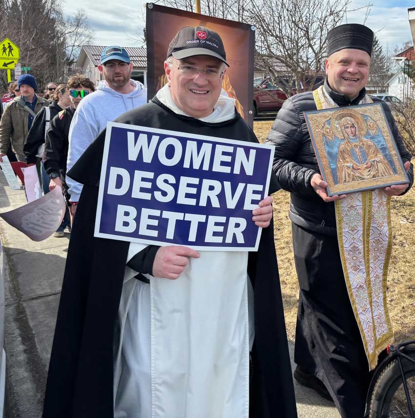 “You are participating in a world-changing human rights tradition of standing up for the very least among us – the unborn,” she said. “The pro-life movement has been marching for 53 years since Roe v. Wade was decided. Millions upon millions of Americans have marched for life through those 53 years, and the witness of all those brave and tireless marchers helped bring down Roe, and it continues to change hearts and minds for life and save babies every day. So, marchers, right here in Anchorage, you are standing shoulder-to-shoulder with all of those marchers through all of those years.”